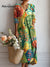 Women's Colorful Tree Painting Art Print Linen Pocket Dress