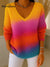 Women's Colorful V-neck Long-sleeved Sequined Casual Loose Sweater