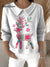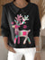 Women's Cute Reindeer Christmas Deer Print Casual Peter Pan Collar 3/4 Sleeve Sweater
