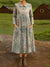 Women's Diamond-shaped Flowers Print Cotton Lapel Button-Down Shirt Dress