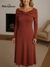 Women's Elegant Bow Collar Solid Color Knitted Dress
