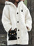 Women's Funny Cat Pattern Art Print Casual Fleece Coat