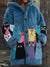Women's Funny Cats Pattern Art Print Casual Fleece Coat
