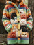 Women's Funny Cats Pattern Art Print Casual Fleece Coat
