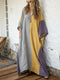 Women's Geometric Patchwork V-neck Casual Cotton And Linen Dress