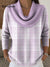 Women's Geometric Purple Plaid Color Splicing Print Cowl Neck Sweater