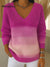 Women's Gradient V-neck Long-sleeved Sequined Casual Loose Knit Top