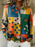 Women's Retro Colorful Abstract Geometric Printed Collared Sweater