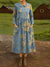 Women's Retro Flowers Pattern Art Print Cotton Lapel Button-Down Shirt Dress