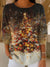 Women's Retro Gold Christmas Tree Art Print Casual Pullover Sweater