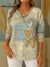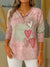 Women's Retro Heart Print V-Neck Long Sleeve Casual Loose Top