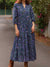 Women's Retro Print V-Neck 3/4 Sleeve Casual Loose A-Line Cotton Dress