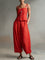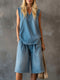 Women's Solid Color Sleeveless Casual Loose Camisole Top With Elastic Waist And Wide-leg Pants Cotton Set