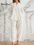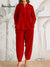 Women's Solid Color V-neck Long-sleeved Casual Loose Cotton And Linen Top And High-waisted Casual Jogger Pants Set