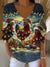 Women's Vintage Christmas Chicken Art Print Casual Pullover Sweater