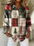 Women's Vintage Christmas Patchwork Art Print Casual Cotton Shirt