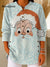 Women's Vintage Christmas Santa Art Print Casual Cotton Shirt
