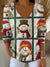Women's Vintage Christmas Snowman Art Print Casual Pullover Sweater