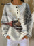 Women's Vintage Christmas Train Art Print Casual Cotton Waffle Sweatshirt