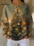 Women's Vintage Christmas Tree Art Print Casual Cotton Waffle Sweatshirt