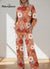 Women's Vintage Flower Art Print Casual Knitted Cotton Top Pants Suit