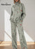 Women's Vintage Flower Art Print Casual Knitted Cotton Top Pants Suit