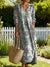 Women's Vintage Flower Art Print Linen Pocket Tunic Dress