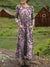 Women's Vintage Lace Flower Art Printed Long-sleeved Casual Dress