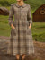 Women's Vintage Plaid Art Print Cotton Lapel Button-Down Shirt Dress