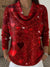 Women's Vintage Shiny Red Hearts Print Cowl Neck Sweater