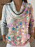 Women's Vintage Sparkling Art Print Cowl Neck Sweater