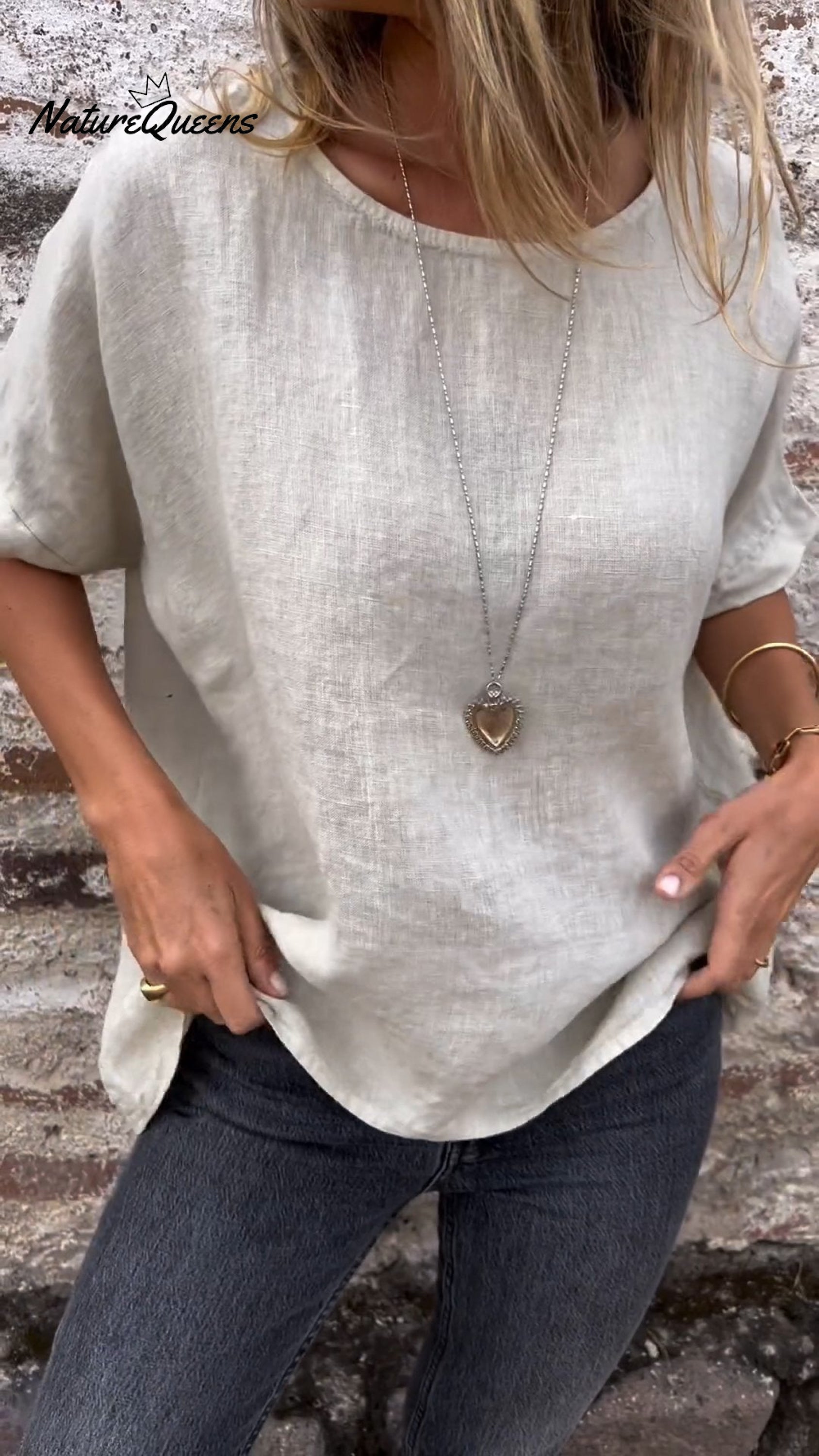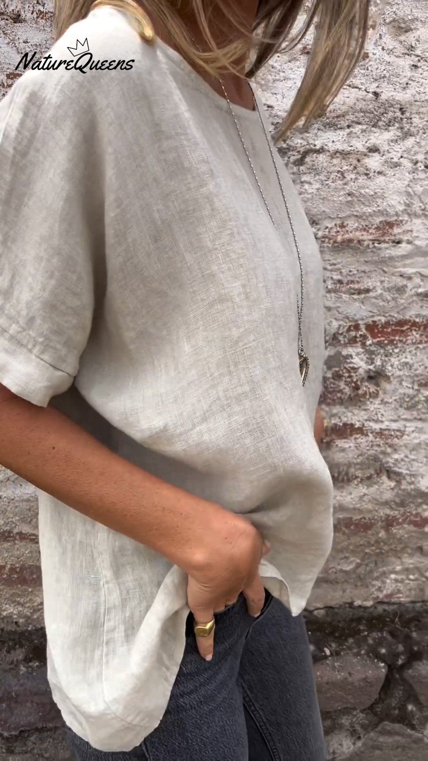 Round Neck Cotton And Linen T-Shirt