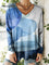 Women's Abstract Colors Pattern Art Print V-neck Casual Cotton T-shirt