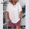 Women's Big V Neck Short Sleeve Hem Bifurcated Multi-layer Collar Pleated T-Shirt Top