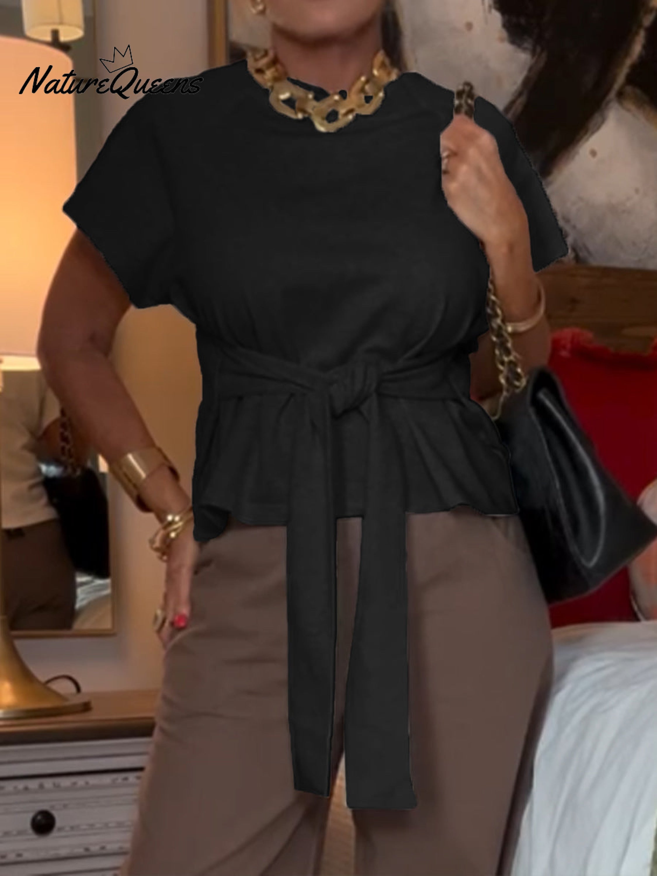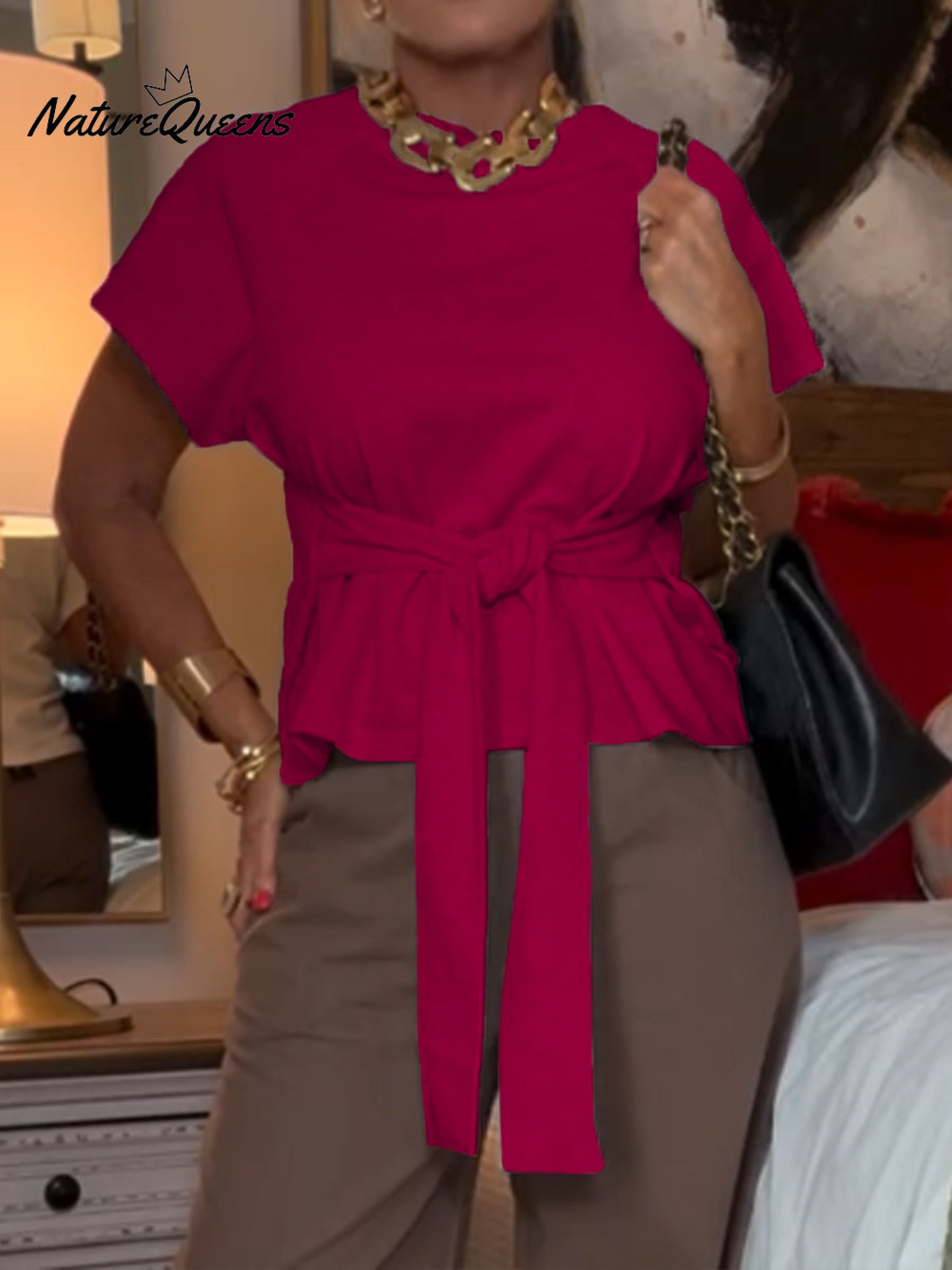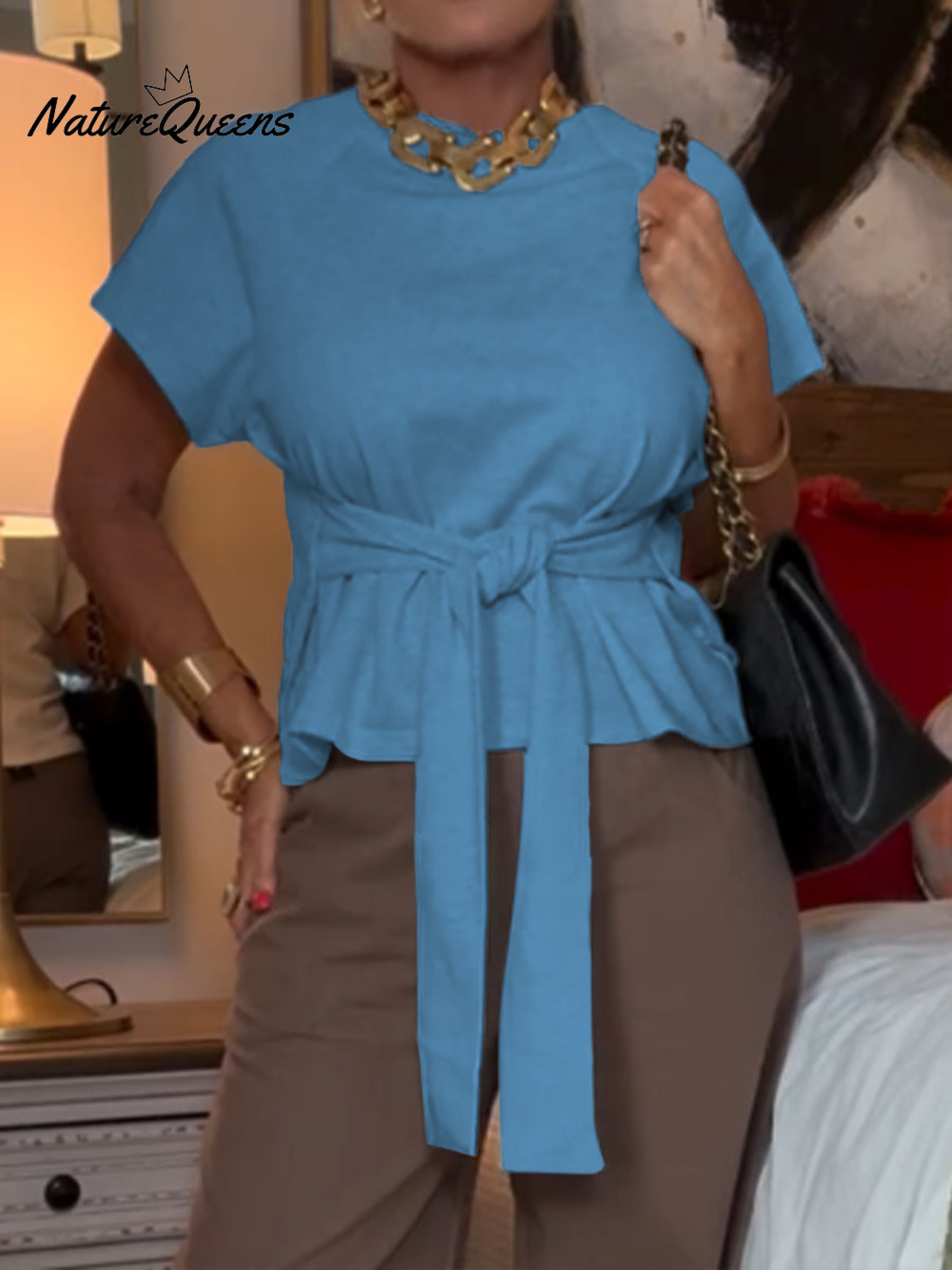 Women's Casual Lace-Up Cotton T-Shirt