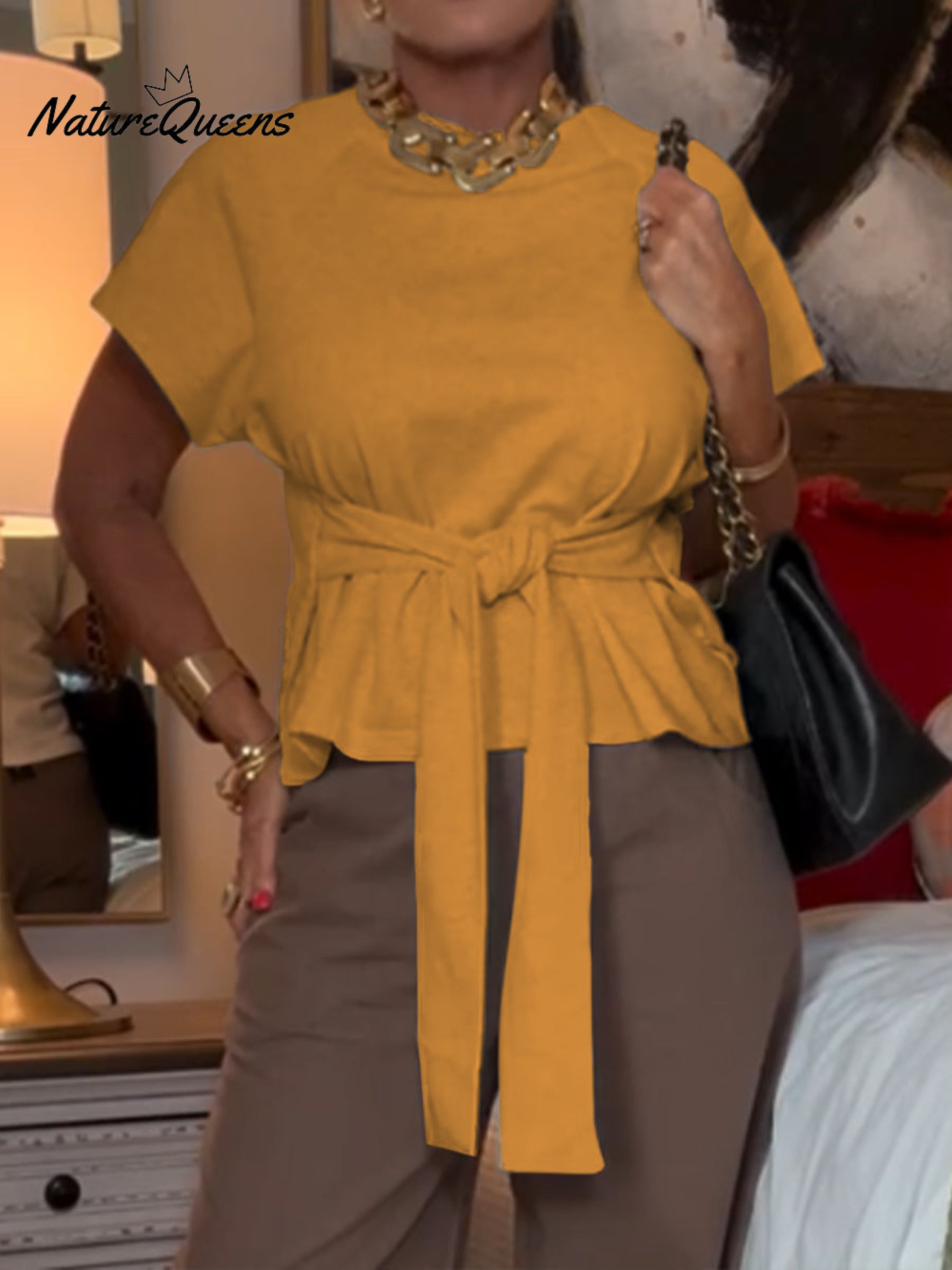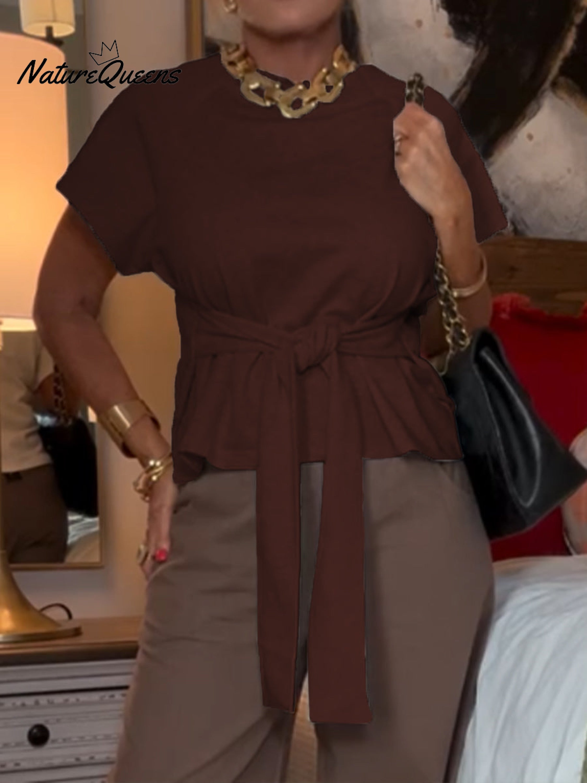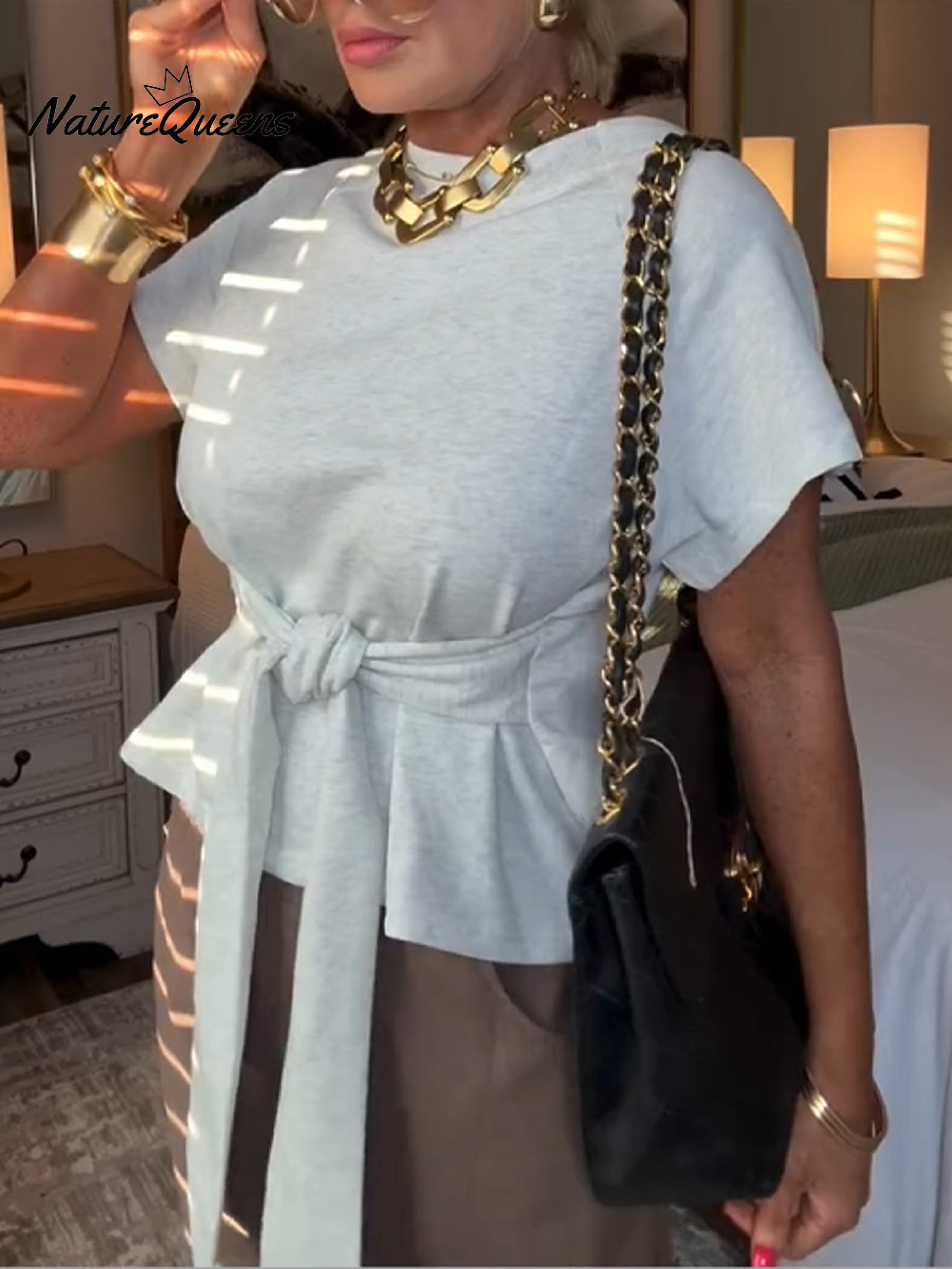 Women's Casual Lace-Up Cotton T-Shirt