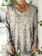Women's Floral Pattern Art Print V-neck Casual Cotton T-shirt