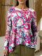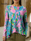 Women's Flowers Colorful Round Neck Casual Print Long-sleeved Ruched T-shirt