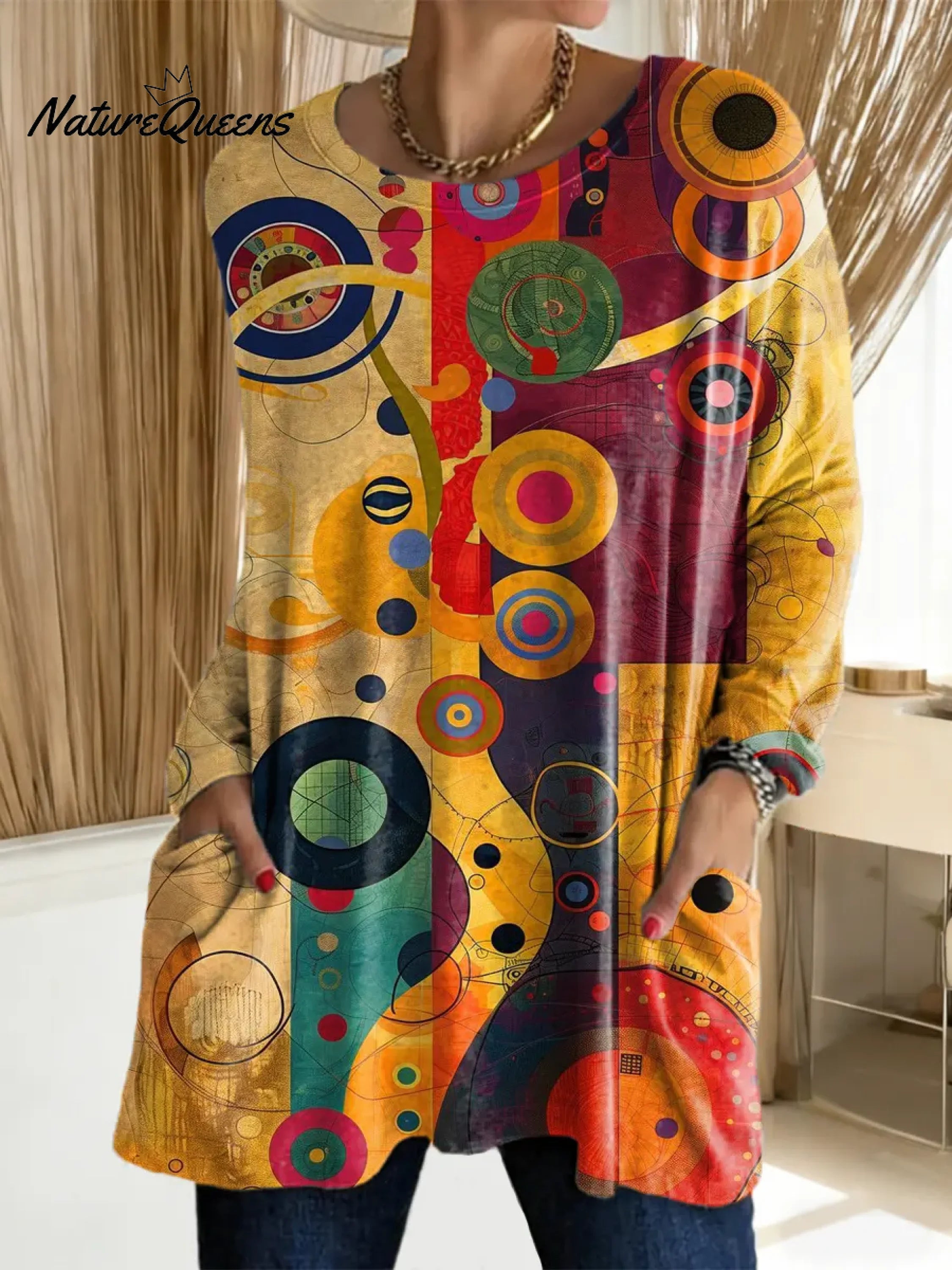 Women's Geometric Pattern Art Print Casual Cotton T-shirt