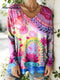 Women's Lovely Floral Flowers Pattern Art Print V-neck Casual Cotton T-shirt