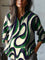 Abstract Swirl Pattern Printed Women's Casual Cotton And Linen Shirt