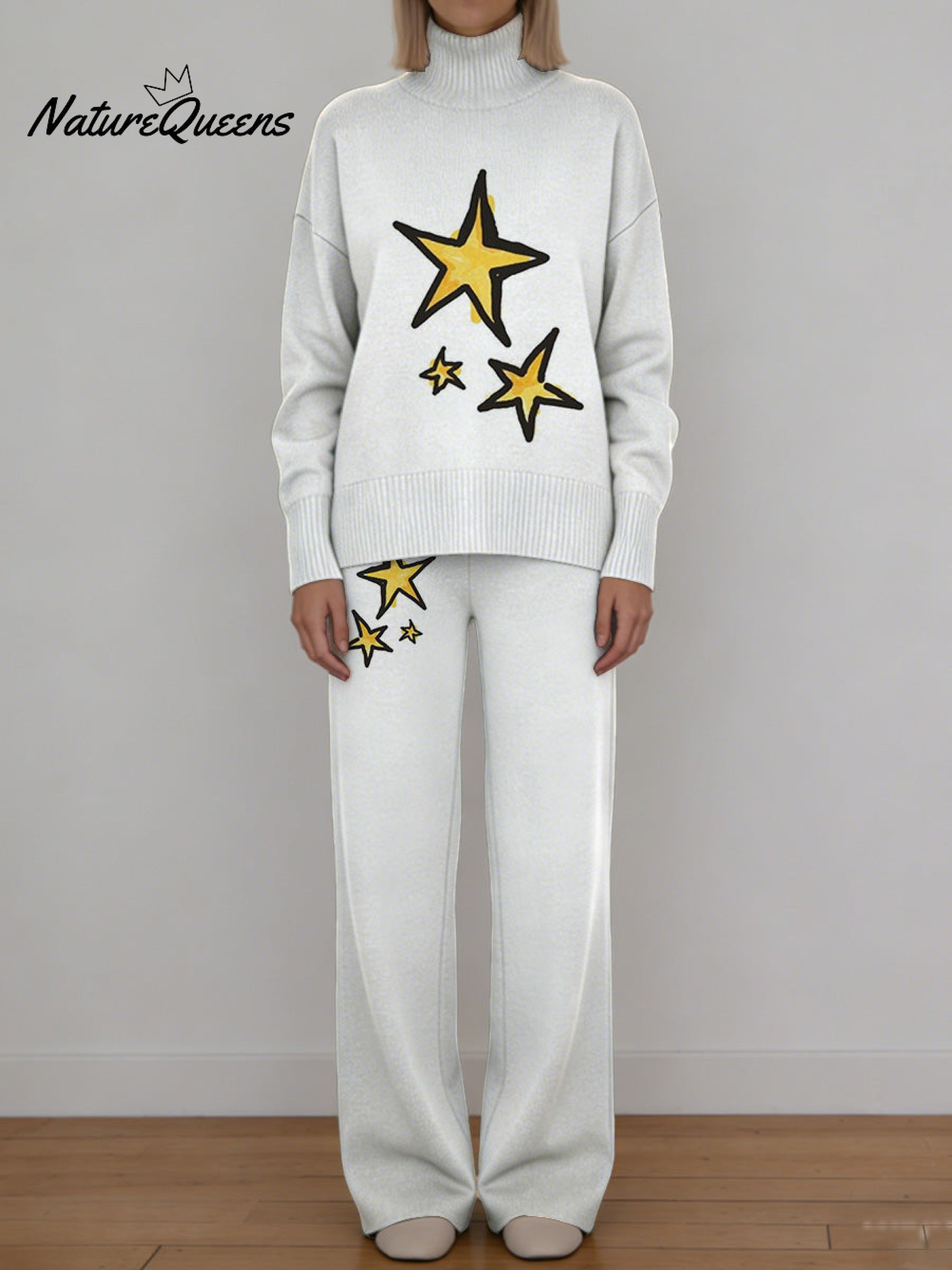 Cartoon Star Decorative Pattern Casual Stand Collar Long Sleeve Top And Elastic Waistband PantsCartoon Star Decorative Pattern Casual Stand Collar Long Sleeve Top And Elastic Waistband Pants