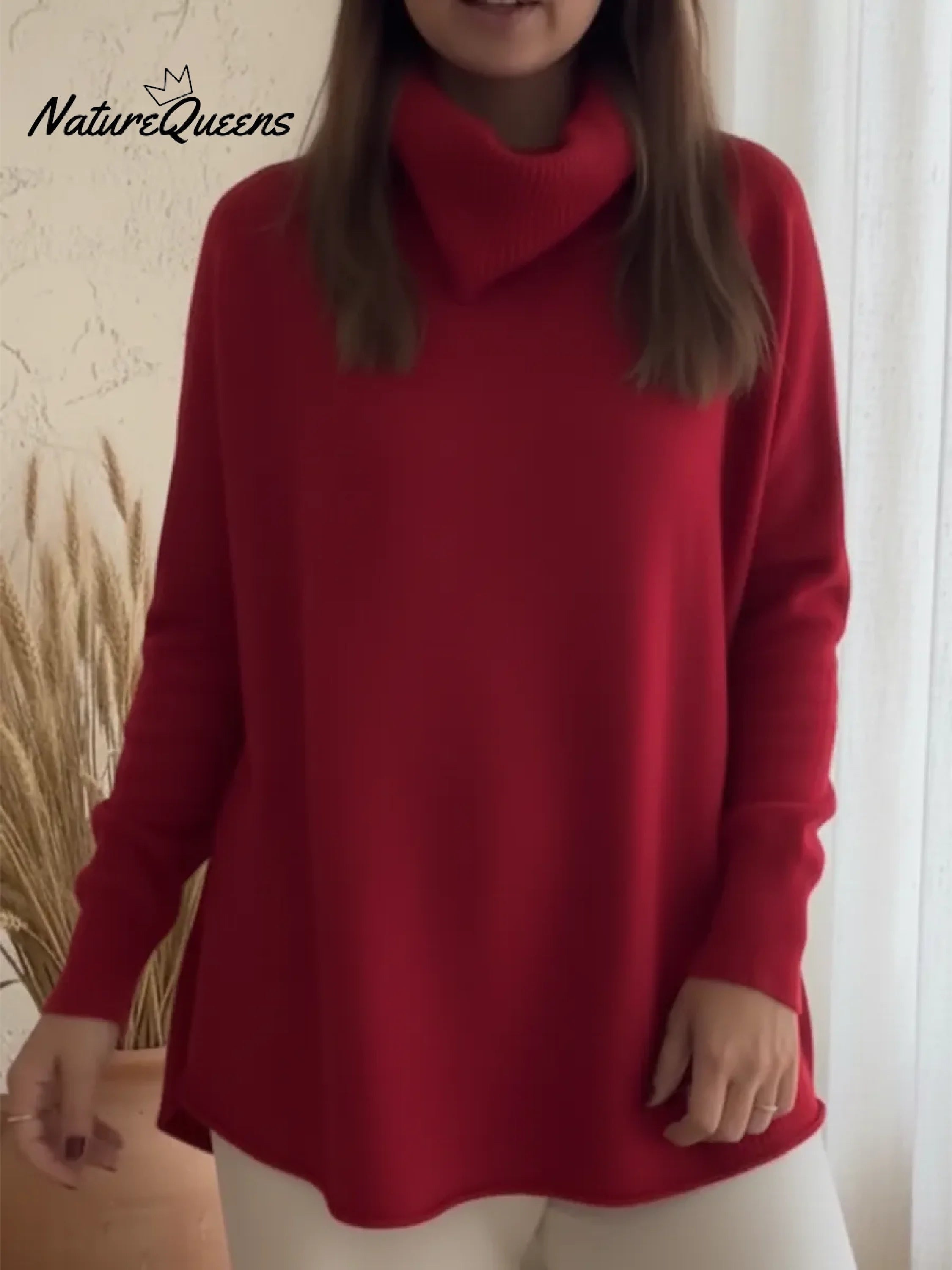 Casual Scarf Collar Solid Color A-line Sweater Top