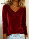 Casual Solid Color Waffle Knit Polo Collar Sweatshirt