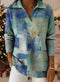 Christmas Retro Gradient Ethnic Art Pattern Art Polo Collar Shiny Loose Sweater Top