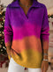 Christmas Retro Gradient Ethnic Art Pattern Art Polo Collar Shiny Loose Sweater Top