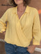 Classic Stand-up Collar Lantern Sleeve Linen Shirt Top