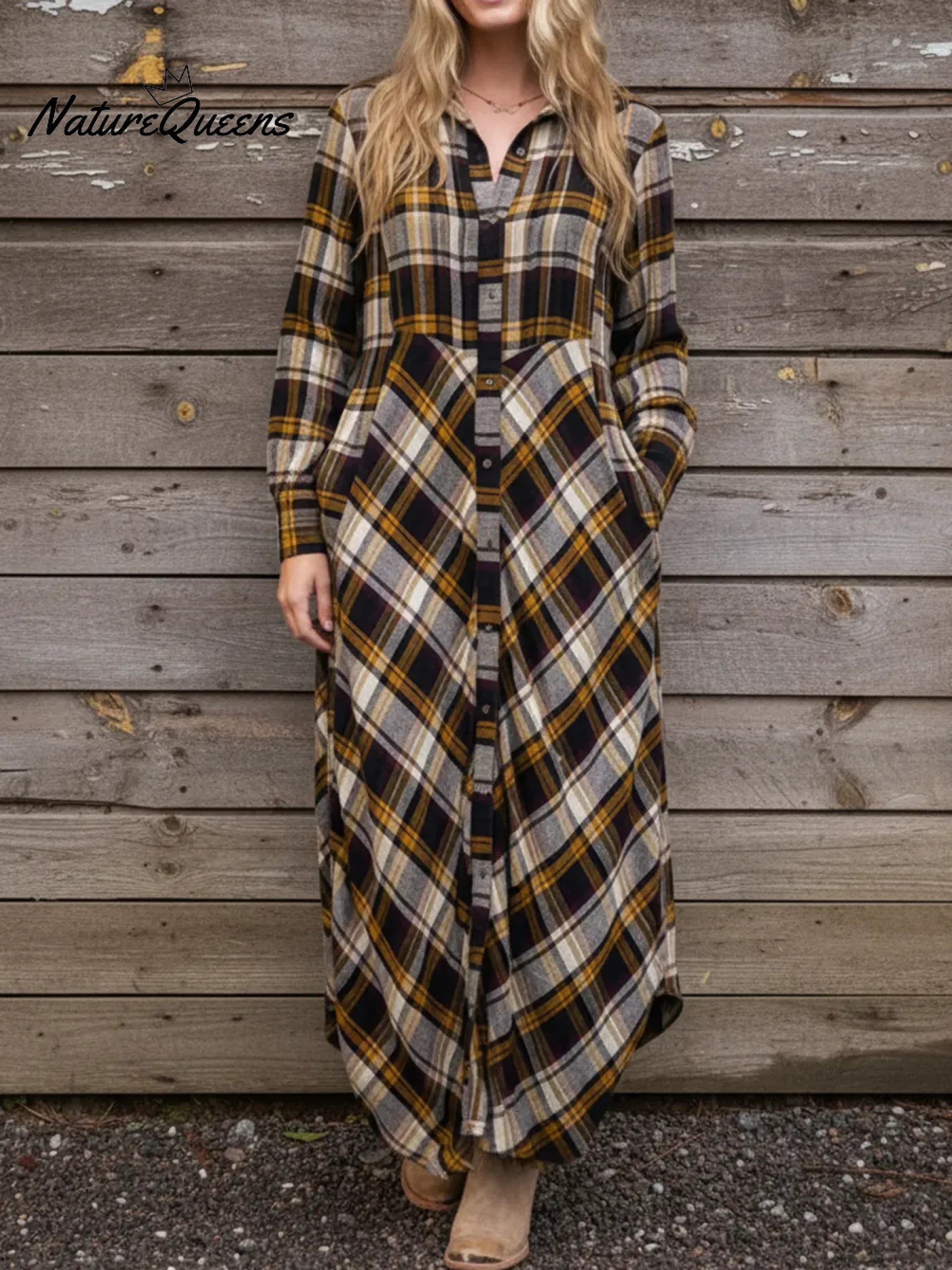 Comfortable Plaid Pleated Patchwork Shirt Dress