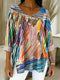 Denim Floral Decorative Patterns Women's Casual V Neck Collar Shirt