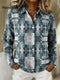 Geometric Grid Decorative Pattern Casual Shirt Collar Long Sleeve Sweater